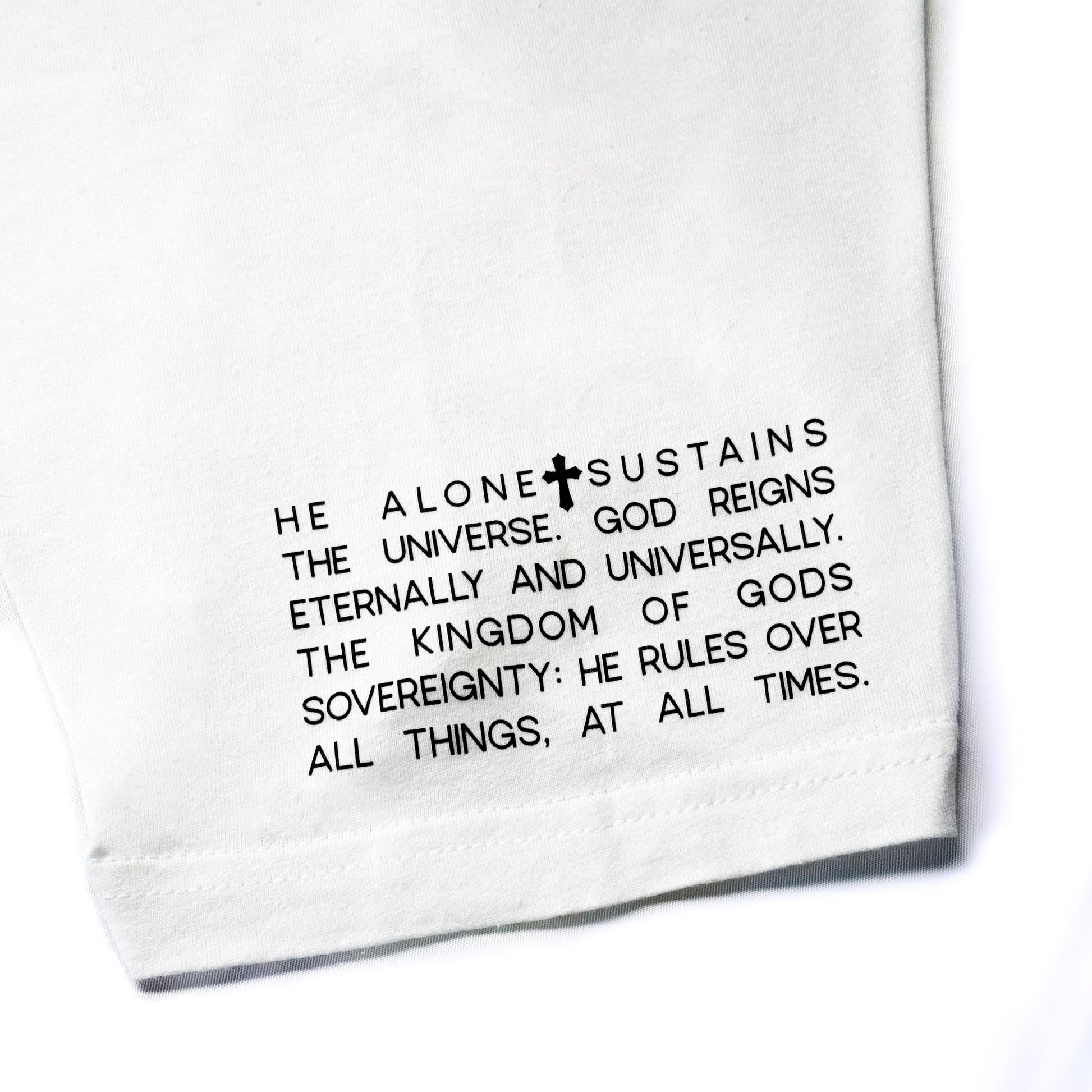 God did it all. What is there that He can't do? Let this powerful statement remind us He is sovereign over all and that nothing is impossible for Him. A bold reminder to all who come in contact with this tee that God is in control, and that everything that we do is because of Him. All praise and glory to the Father and the Son!Â